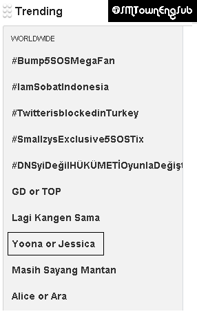 Girls Generation "Yoona or Jessica" hashtag is trending #8 Worldwide