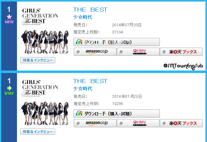 140724 Girls' Generation's "The Best" ranks #1 on Oricon Album Chart + sold 47,400 copies in 2 days
