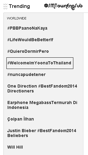 140725 Girls' Generation Yoona's hashtag "#WelcomeImYoonaToThailand" was trending #4 Worldwide