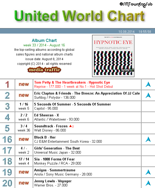 Girl's Generation: 140810 Girls' Generation "The Best" album ranks #17 on Global Album Sales Chart with 32,000 copies sold