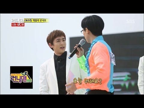 MC Yoo Jae Suk had a brief interview time with the members. Yoo Jae Suk focused on member Nichkhun, saying he didn’t expect to see the romantically linked idol on the show. Nichkhun replied he came to see Yoo Jae Suk. Yoo Jae Suk continued to tease Nichkhun, saying things are going well for the 2PM member. Nichkhun started to give an embarrassed smile as Yoo Jae Suk asked when he started seeing “her,” referring to Girls’ Generation’s Tiffany, whom Nichkhun confirmed to be dating earlier in the year. Instead of answering that question, Nichkhun just bursted out with “I’m happy,” and starting bowing.