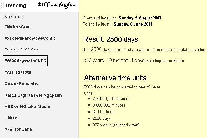 Girl's Generation: 140607 Girls Generations' hashtag "2500dayswithSNSD" is trending #4 worldwide