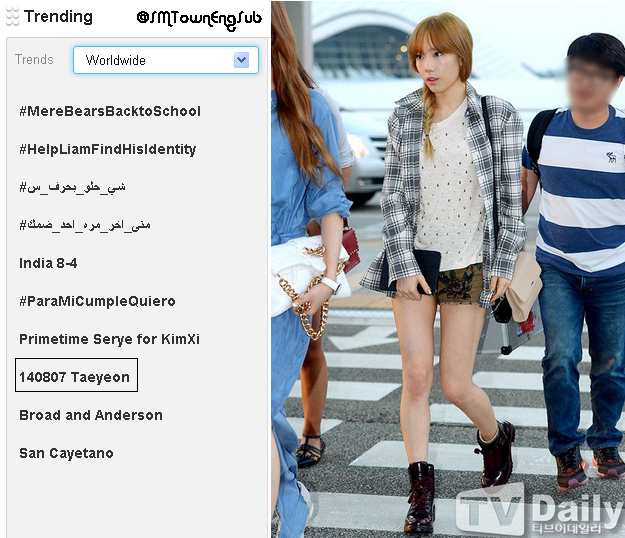 Girl's Generation: 140807 Girls' Generation Taeyeon's airport fashion shines as “140807 Taeyeon” trends at #8 Worldwide