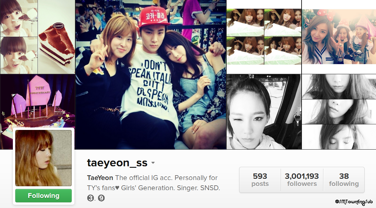 Girl's Generation: 140829 Girls' Generation Taeyeon surpasses 3 million followers on Instagram following G Dragon