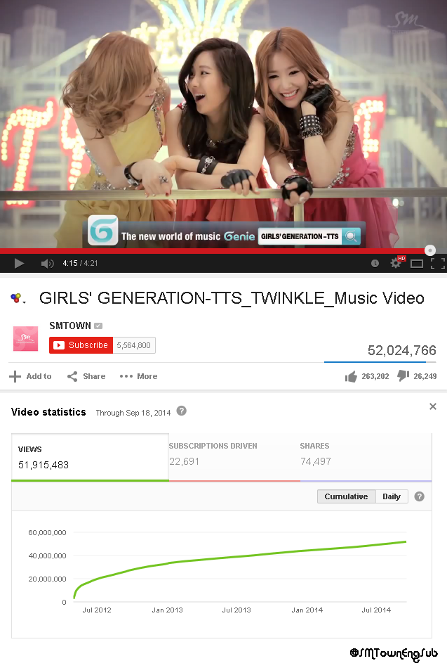 Girl's Generation: 140920 Girls' Generation TaeTiSeo's 'Twinkle' (with EXO K) MV hits 52 million views on YouTube