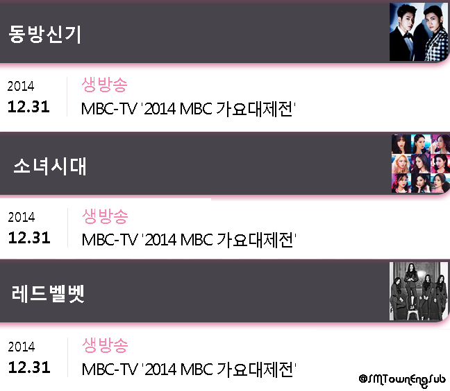 Girl's Generation: 141218 Girls' Generation confirmed for KBS 'Music Bank,' 'Gayo Daechukje' and MBC 'Gayo Daejejun'